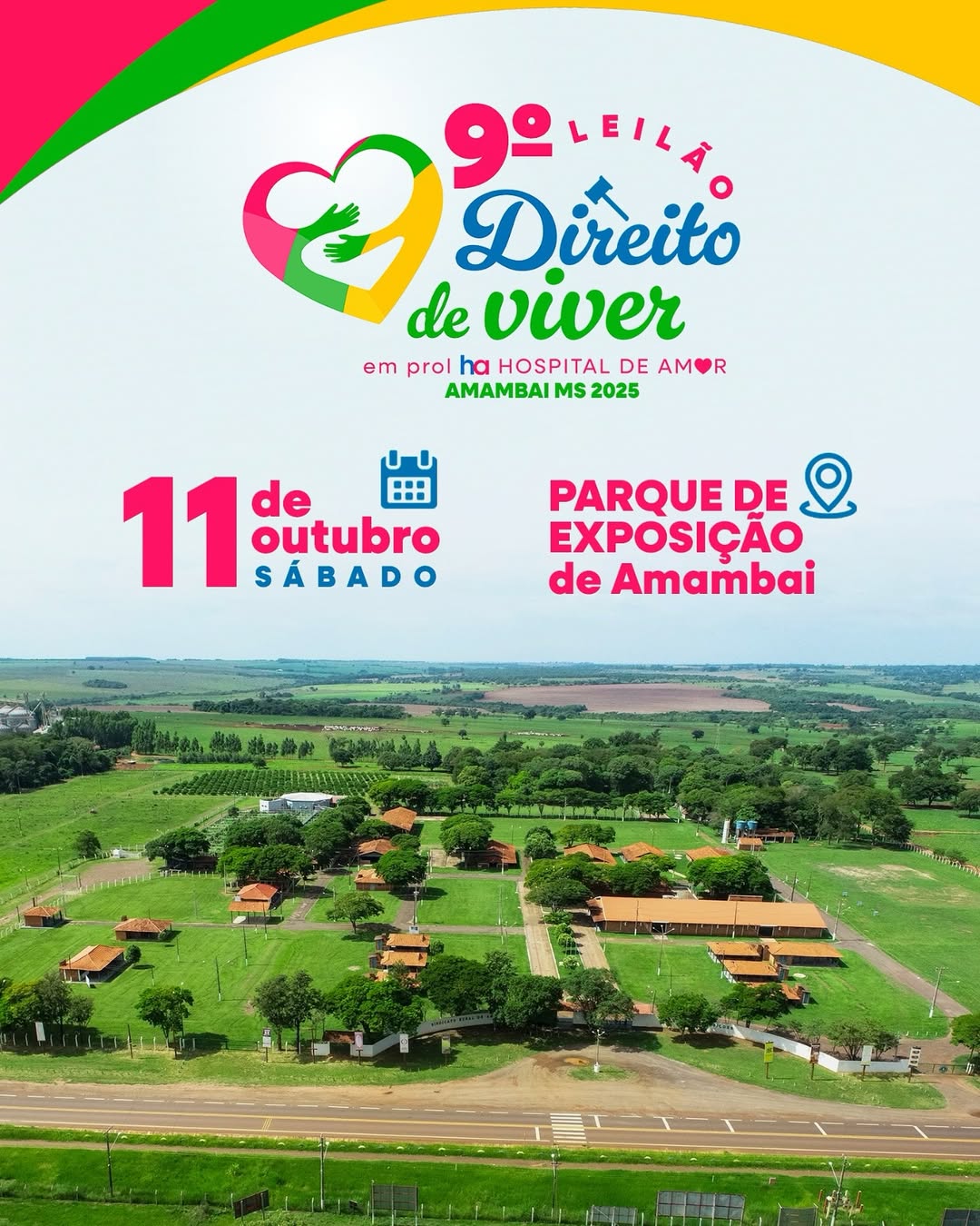 O tradicional Leilão Direito de Viver, em prol do Hospital de Amor, chega à sua 9ª edição neste sábado, 11 de outubro, no Parque de Exposições de Amambai.
