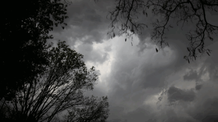 Os ventos chegaram a 15 km/h, conforme o monitoramento de satélite Zoom Earth.